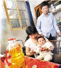 村民给王松华送来衣服和油。