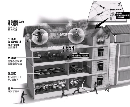 昨天清晨,杭州滨江区西兴街道七甲闸村发生一起火灾:一幢四层楼的民房起火,当时房子里住着好几个开淘宝服装店的年轻人,大多数人都逃生了,唯独住在四楼阁楼的两个90后没有逃出来,让人唏嘘不已。
