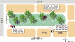 过了一分多钟,张又把她抱出来,钻进了路边的绿化带……六分钟后,张拿着姑娘的背包,逃出小区。姑娘随后跑到北门岗亭向保安求助。