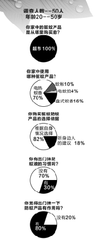 近日,早报记者做了一项针对家庭如何选择防蚊、驱蚊产品的微调查。据调查显示,7成家庭选择电热驱蚊产品,近8成人觉得出门喷抹驱蚊产品有作用。