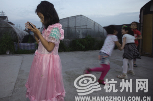 下午5点多,院子里的小孩都放学了。房东的女儿也是2004年出生,现在笕桥镇上读小学一年级。