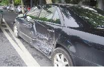 昨天下午1点半,陈师傅正驾驶凯迪拉克从杭州莫干山路文二路路口由南向东转弯,一辆白色广本却从路口北面,由北向东转弯,往陈师傅这边撞来。