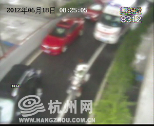 8点21分,在警用摩托车的带领下,救护车赶到事发点,指挥中心又指令正在对向车道执勤的民警穿过车道,封闭上塘高架主干道。