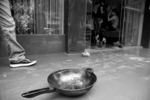 烧猪蹄的锅放在足浴店门口降温 见习记者 陈荣辉 摄