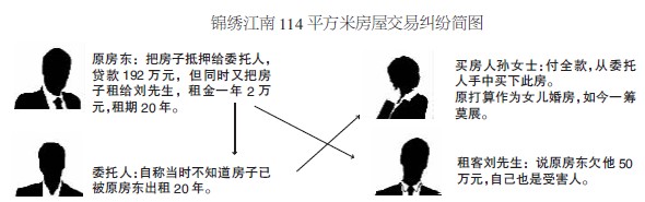 实际购房者是孙女士的女儿女婿,他们可以向法院提起诉讼,告原房东。为什么告的是原房东而不是原房东的委托人?因为虽然这个委托人说房子是房东欠了他钱,抵押给他的,但是他们并没有办理抵押手续,只是进行了委托公证,抵押的说法也只是口头讲讲而已。从法律关系上讲,委托人仅仅是房东进行房屋买卖的一个代理人,发生法律关系的人还是原房东,整件事情和委托人无关。