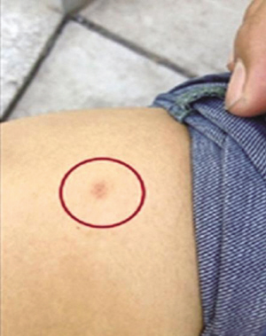 徐天被艾滋针扎伤处出现一个红点