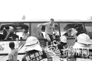 浙江大学城市学院刚入学的36个新生受邀到场。等他们坐上大客车,消防指令员宣布:汽车故障,可能起火,请马上下车。