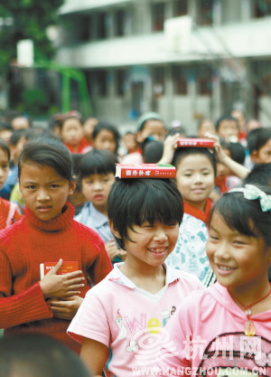 有些没拿到字典的孩子看得眼热,伸手摸摸别的同学手里的新字典,老师忙说:“不要着急,每个人都有的,下课就发给大家。”我们的爱心使者魏传民是位摄影师,他为几个班级都拍摄了集体照。