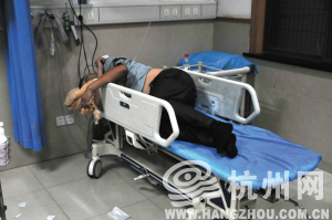 跳高架桥的方某躺在医院救治 记者 蒋大伟 摄