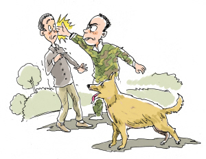 昨天12:59,周女士来电:早上6点到6点半,断桥一带,有个男的带了大狼狗遛西湖,也不拴绳子的,今天有老人看不过去说他怎么不牵绳子,他冲上去就骂,还打了老人一个大耳光,因为他身边有只大狼狗,大家都不敢上前。