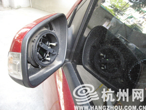 网友“Caprocorn”姓黄,住在松木场河西×幢,上周四早上6点半,小黄出门上班,车停在自家楼下,等去开车时,突然发现车子的左后视镜玻璃不见了!