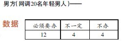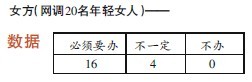 请看记者分别对20位男女进行的微调查