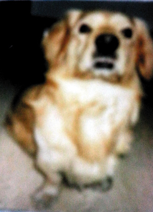 沈阿姨养了条宠物狗,9岁,金黄色,是金毛和可卡的杂交,二十多斤。