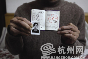何师傅拿出他1978年在文华印刷厂当机刀工的上岗证。记者 江玥 摄