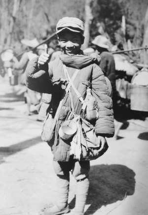 1944年11月23日,13岁的中国驻缅甸远征军士兵李占宏面对镜头稚气十足。 ——翻拍自关爱抗战老兵志愿者为老兵们制作的2013年《国家记忆》挂历