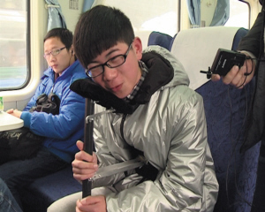 滕劲尧不停地摆弄着这个硬座宝,引起了周围乘客的注意,有两个小伙子还主动过来要求尝试一下。