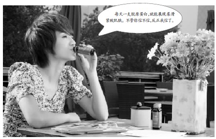 不少女明星代言了胶原蛋白产品。杨幂在广告词中说:“肌肤的外在光芒来自科学的内在保养,希望借这次代言的机会,将内补胶原的天然养美之道分享给所有爱美女生。”