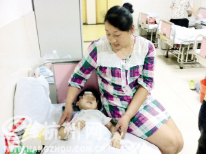 富阳人民医院初步检查伤情并紧急处理后,建议将欣欣转送至省儿保进一步治疗,并派出了120救护车护送。