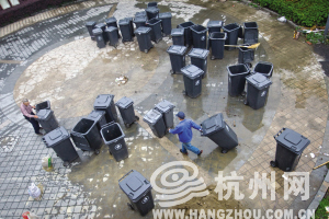 有五六个垃圾桶的垃圾,就倒在业主家门口的绿化带上,我们照片都拍下来了。