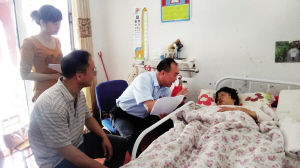 到了何小容家,法官一看,小容躺在床上,而丈夫在一边默默地站着。