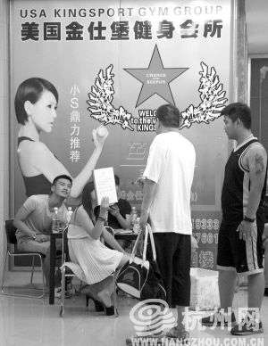 昨晚7点多,市心北路某国际广场大楼西侧有块蓝色的招牌,写着“金仕堡健身会所”。