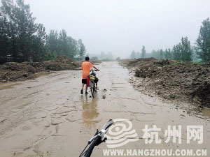孙爸爸发现右侧有一个小山坡,他们打算从右侧尝试进城。但由于山坡被雨水浸泡,泥土变得异常柔软,泥泞不堪,自行车完全无法前行。父子俩在周围的每个山坡和小道都尝试前进,滑倒很多次,脚上腿上都受了伤。