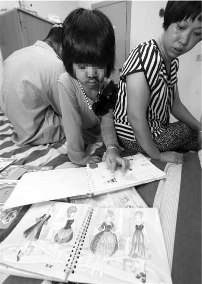 我注意到,在她的美术本上,很多都是穿着裙子的小女孩。婷婷妈妈说,她看到其他小朋友穿裙子很漂亮,也很想穿裙子。可她现在这种状况,怎么穿?“有的时候,婷婷会拿把小剪刀,偷偷剪掉身上的毛,可越剪越浓,她后来不敢剪了。”