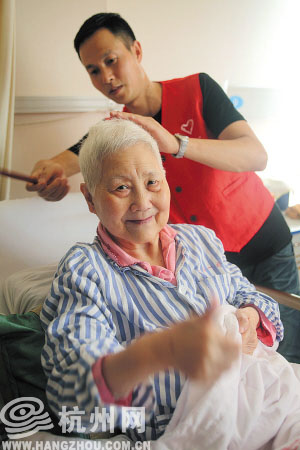 “侬个人老好嘞,帮阿拉个头剃得老漂亮啦!”朱奶奶隔壁床的秦奶奶是上海人,今年84岁,油光发亮的白发倒着梳,很洋气。