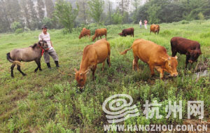 2010年,她从老家带了10头牛到杭州,又买了三四头母牛配种。李女士家附近有块约1000亩的空地,李女士就将牛散养在这块空地里。