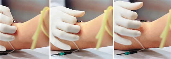 检验科门诊临检小组组长詹碧翠说,抽血的地方有4个窗口,平均每天上午要抽六七百人次。从一个个技术细节的实践中,他们渐渐总结出了扎针不痛的技巧。“我们的针头在最后进入病人血管的时候,由医生的手给针头一个加速度,比拿着针头推入静脉的速度快很多,最后医生的手是松开的,所以有病人叫它‘飞针’。”詹碧翠说,之所以敢这样做,是因为足够熟练,能够一下找准血管的进针位置。慢慢的,“飞针”这个说法,开始在病人中口口相传。