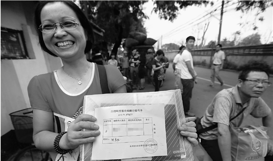 不眠不休,排队两天两夜,家住白塔岭的江南实验学校张老师拿到了一个大大的“13号”,掩不住嘴角浓浓的笑意:“我选的是嘉绿文苑,那里是学区房还是地铁房。同事们都为我高兴,要我请客呢。”