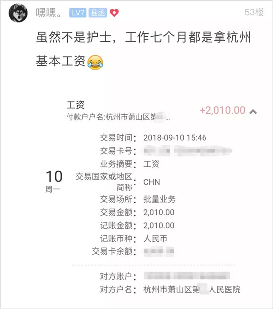 萧山一在编护士晒工资单火了!很多人不信: 你肯定是个假护士