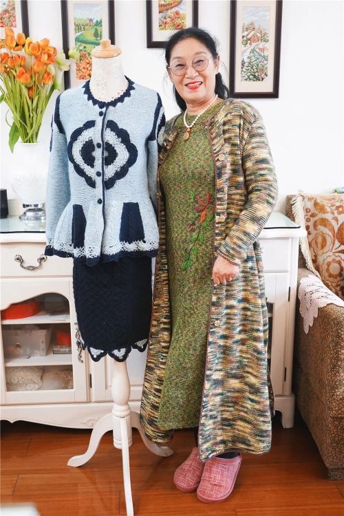 记得上世纪的七、八十年代,“挑毛线”风靡一时,我也曾很嘚瑟地穿过妈妈亲手织的毛衣,虽然花色有些单一。卓阿姨十几岁时就喜欢上了织毛衣,一开始只是比较简单的样式,后来买了一些专业的编织书,再加上不断摸索与练习,就不是简单的挑毛线了。