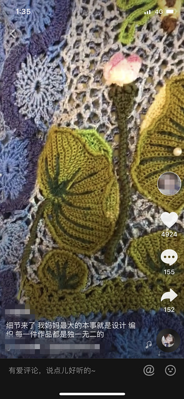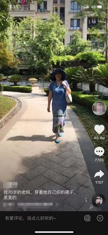 第一次“看到”卓阿姨,是在好朋友的手机里。那天她跟我说:“我的一个小姐妹玩抖音,平时自己不管怎么折腾都只有几百个点赞,有天发了她妈妈穿着自己打的毛线衫走在小区里,就有几十万个点赞呢,小姐妹表示对妈妈也是服气的。”