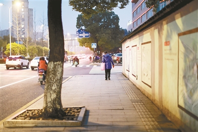 回家路上已经亮起了灯,曹云妹回望自己站岗的路口,进出东站枢纽的车辆川流依旧……