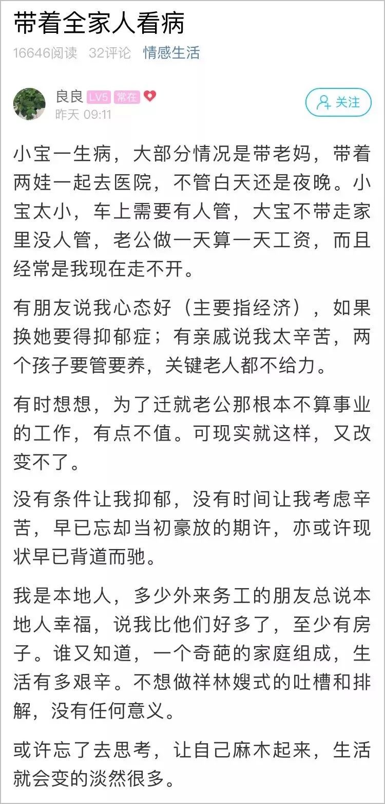 忙得不行,丈夫却既不理解又不提供帮助,长辈也帮不上忙,公婆各种推脱,自己父母力所不及。如此种种,让她一度崩溃。