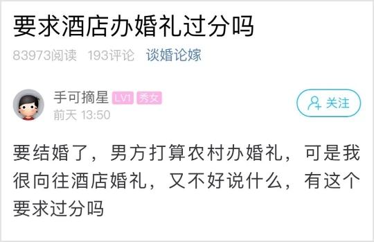 杭州姑娘:我很向往酒店婚礼,男方打算农村办,这要求过分吗?