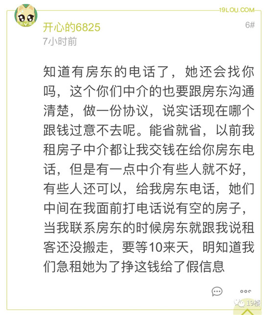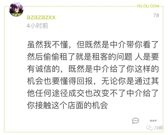19楼综合整理 说到中介这两个字 不少人的第一反应可能是“坑” 但最近有网友却发帖表示 这一次中介被客户坑了! 19楼网友@Grand tert?@微信爆料 客户找中介说租个商铺做清酒吧,带看了两个场地,其中教工路的位置看了蛮喜欢,又让男朋友来看了一遍,男朋友来了就说就这套吧,其他的也不看了。结果房东说什么,你们要去查下这里可不可以做哦,又走到楼下,拍着自己在墙上留的电话说话,你要回去考虑考虑吧,问清楚再说。 中介立马说你们互相留个微信吧,结果客户走了之后第二天就说不租了,男朋友租在别的地方了。不找了,中介方说,美女我不知道你们因为什么不租了,但是如果最后你们租了这套房子,要付中介费的哦,客户还回答知道的。
