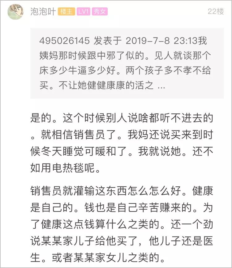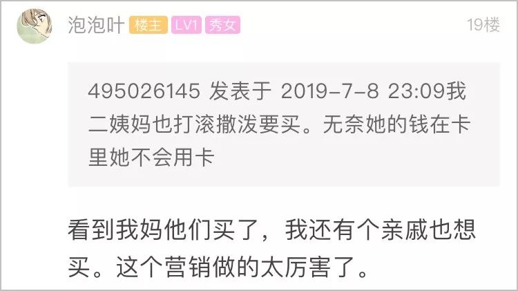 姑娘说,自己也一直在劝说父母,但父母就是听不进去,只相信销售员的话,反而自家亲戚也被带着想买了……