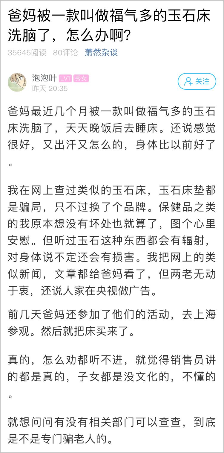 杭州萧山一姑娘最近感到很无奈,自己父母放着家里原本好端端的床不睡,硬是跑到上海另买了张3万多元的玉石床,天天吃完饭就去躺着……