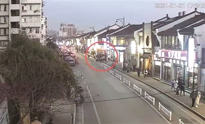 女子倒在高银街“百家鲜”门口 监控视频截图