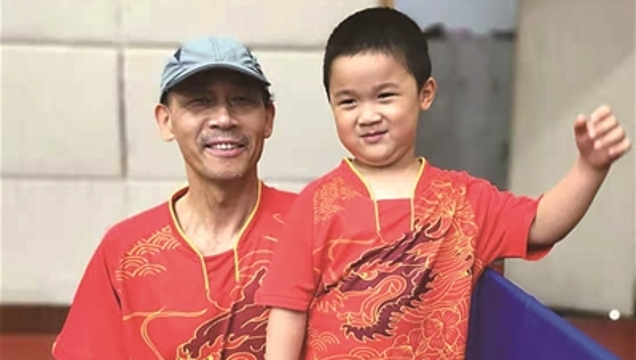 现在他是乒乓球教练,看到孩子们打球有进步比什么都开心