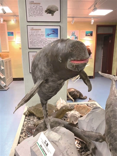 之江路上这个展览馆里,除了江豚,还有大家最熟悉的鲫鱼、鲤鱼、白鲢、青鱼等,也有许多人从没见过的圆尾斗鱼、红狼牙鰕虎鱼、弓斑东方鲀等鱼类。执法队一位工作人员告诉我,整个展览馆里有150多种物种标本,从20世纪80年代开始收集整理,2005年展览馆建成。