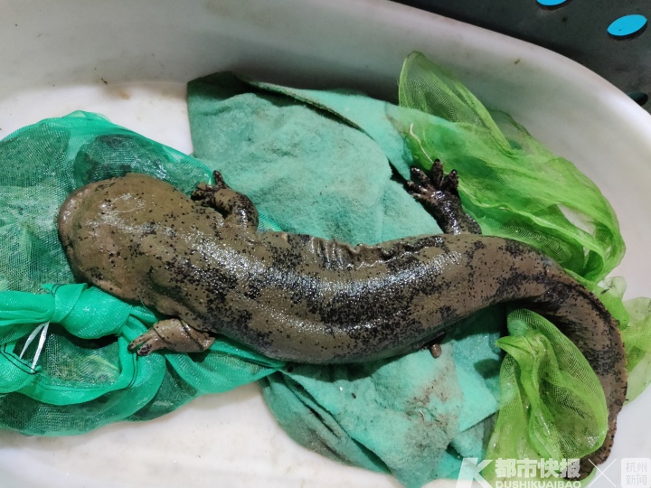 都市快报讯 市民潘师傅打电话给杭州市渔业执法大队:“我在一家水产店发现了一条娃娃鱼,个头不小。”经联系,水产店老板主动提出要捐赠这条娃娃鱼。