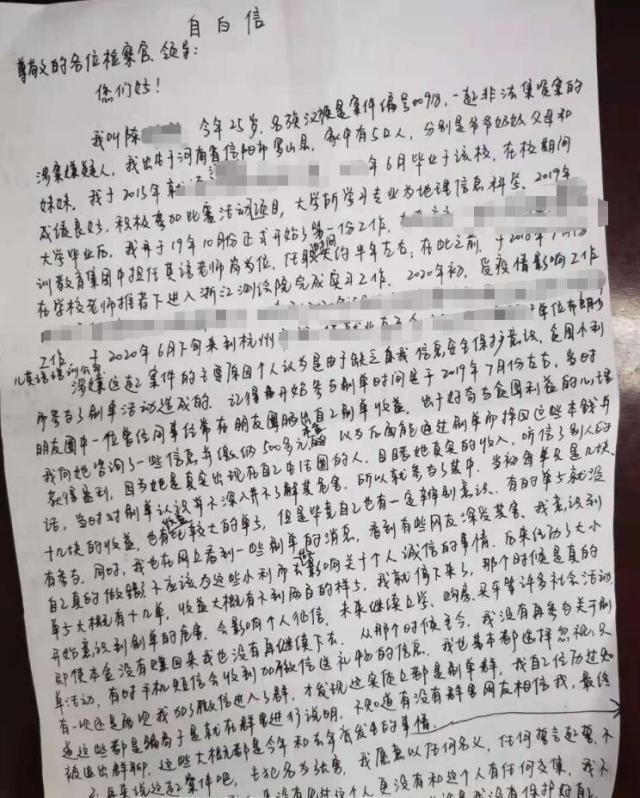 随后,小陈跟失了魂一样,根据电话那头的指令前往最近的一家旅店,关好门,并和手机那头的“民警”通过网络电话形式制作笔录,甚至还按照对方要求写下了3页纸的自白信!电话那头的人跟她说,笔录做完了,现在还处于保密阶段,这件事你任何人都不能讲!