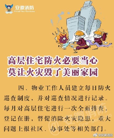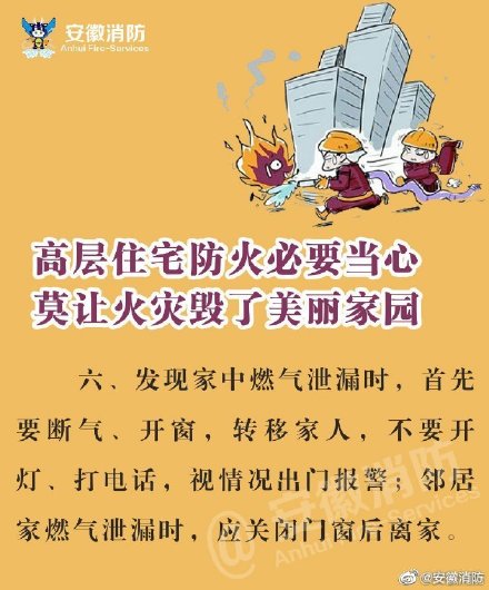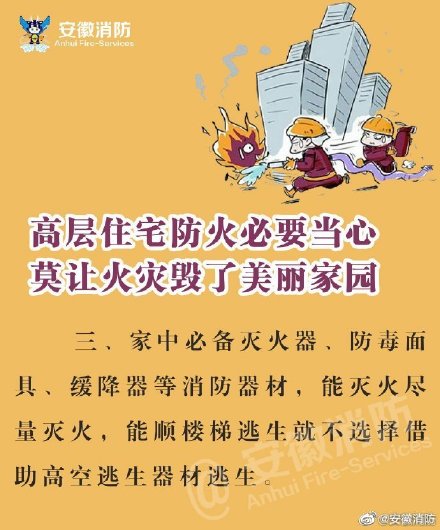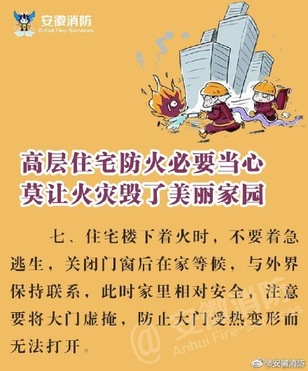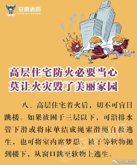今天,安徽消防官方微博也发布了高层着火的注意事项和逃生方法。