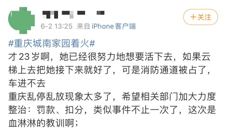 据“重庆南岸消防”通报,2021年6月2日6时31分,南岸区城南家园8组团9栋一住宅发生火灾。6时52分,现场明火扑灭,火势得到全面控制。经核实,现场有一名住户(女,23岁)意外坠楼,送往医院经抢救无效死亡。目前,火灾原因及财产损失正在进一步调查统计中。