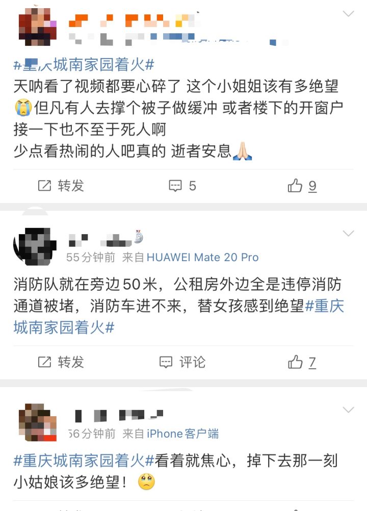 都市快报综合 今天(2日)上午,重庆南岸区一小区发生火灾,一女子为避火从窗外翻出,不幸坠楼。女子随后被消防和急救人员送医院。视频中,女子坐在窗台上,手抓着墙壁慢慢下滑,不慎落下。