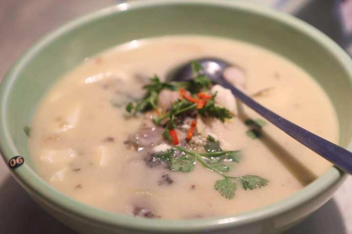 好到什么程度?“我现在一个人住杭州嘛,身边同事朋友都知道我烧菜好吃,所以周末各种来我家蹭饭。”小徐说。而这道鲫鱼豆腐汤,更是继承了自己老妈“真传”——“其实也没什么特别秘诀啦,鱼要先煎一下,然后一定要加热水煮汤,这样才会有白汤出来。哦,我还加了芝士片,这个灵感来源于煮泡面,哈哈哈,加了芝士片汤会更厚也更好喝,算是自创吧。”
