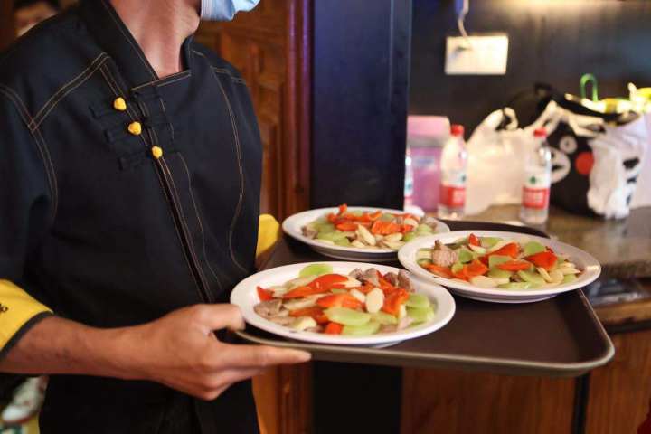 于师傅,就是同时参加了我们橙柿互动App上周推出的“我的老爸是厨神”活动的选手,也是这次初赛里年龄最大的一位,78岁咯。于师傅上午10点多就从余杭家里赶过来做准备,他烧得菜看起来很家常:莴笋山药炒肉片。